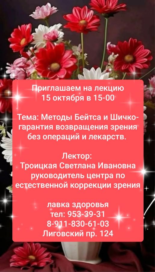 КомментироватьХожу на лекции Владимира Николаевича Вишнева и других православных врачей с января этого года. Был на консультации у Владимира Николаевича по поводу своего здоровья. Он выписал капли СКЛЕРОВИШ. ЭСКОВИШ, ПРОТИВОВОСПАЛИТЕЛЬНЫЕ ,БЕЗ ФИБРОМ АДЕНОМ и другие. Я их принимаю уже третий месяц. Упражнение, которое он дал для профилактики инсульта (на счет 1-2-3-4-5-6-7-8), я делаю регулярно.Чувствую себя намного лучше. Весной этого года был на лекциях "Здоровье православному человеку",которые проводились на православной выставке-ярмарке в Петербургском СКК с 27.03 2018г. по 01.04.2018г. под руководством Доктора Вищнева Владимира Николаевича. На лекциях я узнал много интересного и полезного для себя. Импонирует то,что все лекции проводятся в формате простого человеческого общения ( а не нудные и унылые доклады!). Считаю, что дело, которое делают Владимир Николаевич Вищнев, Николаева Елена Александровна, Рыжков Валерий Дементьевич, Пашкова Лариса Владимировна, Могельницкий Александр Сергеевич и другие врачи, очень нужно людям. Огромное спасибо им всем.
